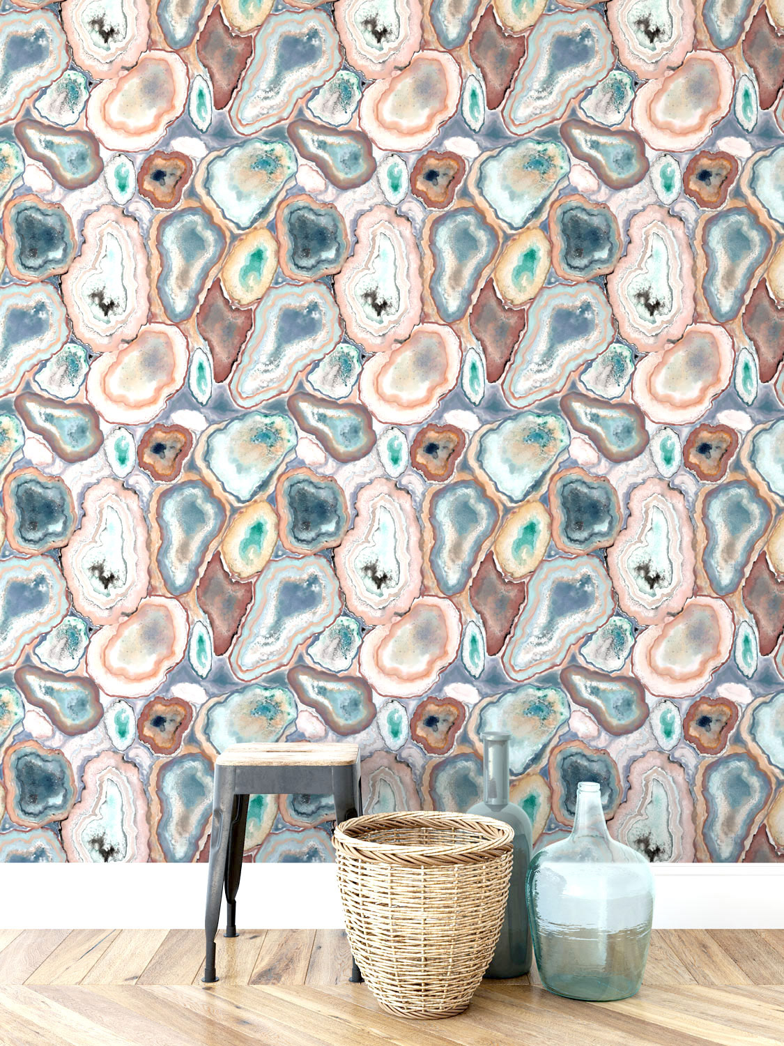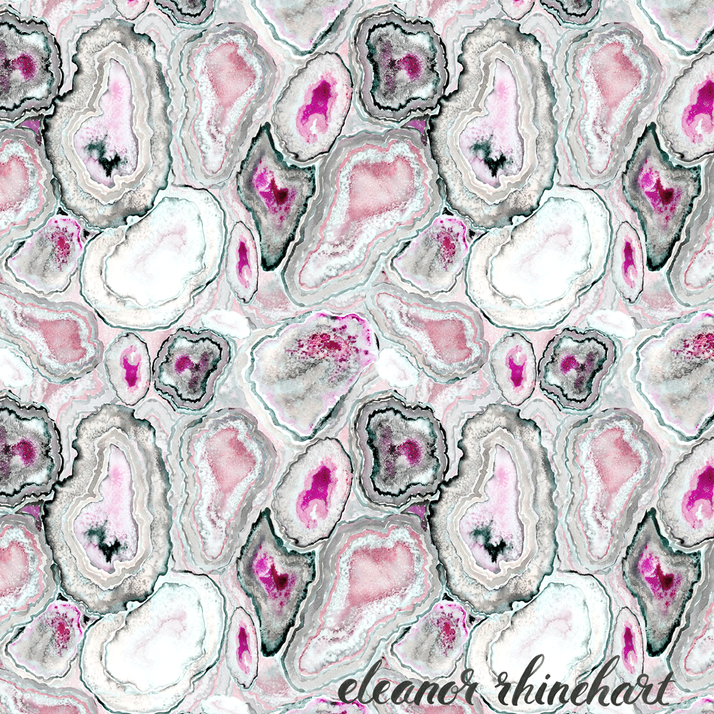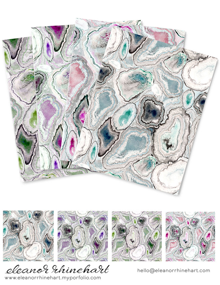 Hand painted Geode patterns in multiple color palettes capture an exciting trend, delightful on a variety of products from Home Decor to Party Paper!